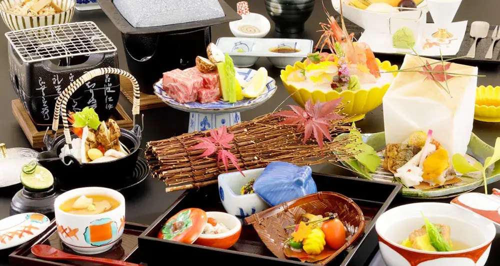 食事は旬の食材を贅沢に使った和食を、朝夕ともに客室ダイニングで提供。