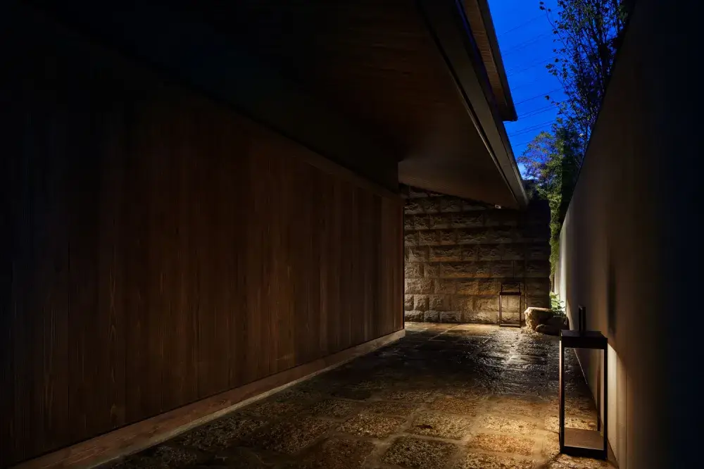 館内の共用部にある建具や景石は、築100年以上の世田谷の茅葺屋敷より譲り受けたもの。