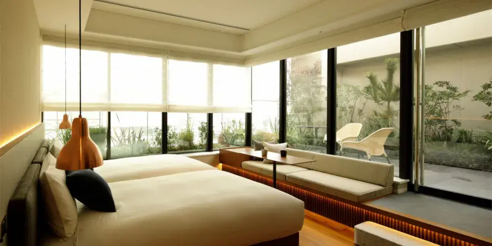 ホテル内では、随所に緑をふんだんに取り入れ、ふとした瞬間に自然を感じられる空間をご用意。客室は、まるで自宅のリビングにいるように過ごせる居心地のよさを追求しました。
